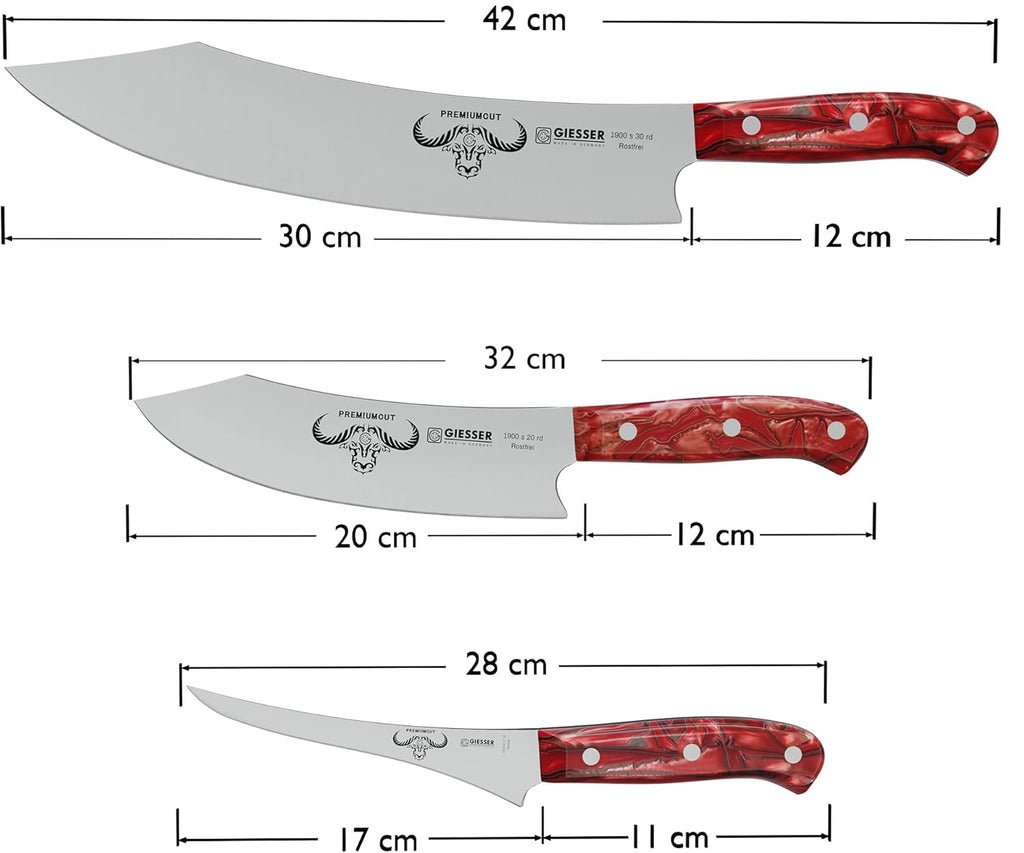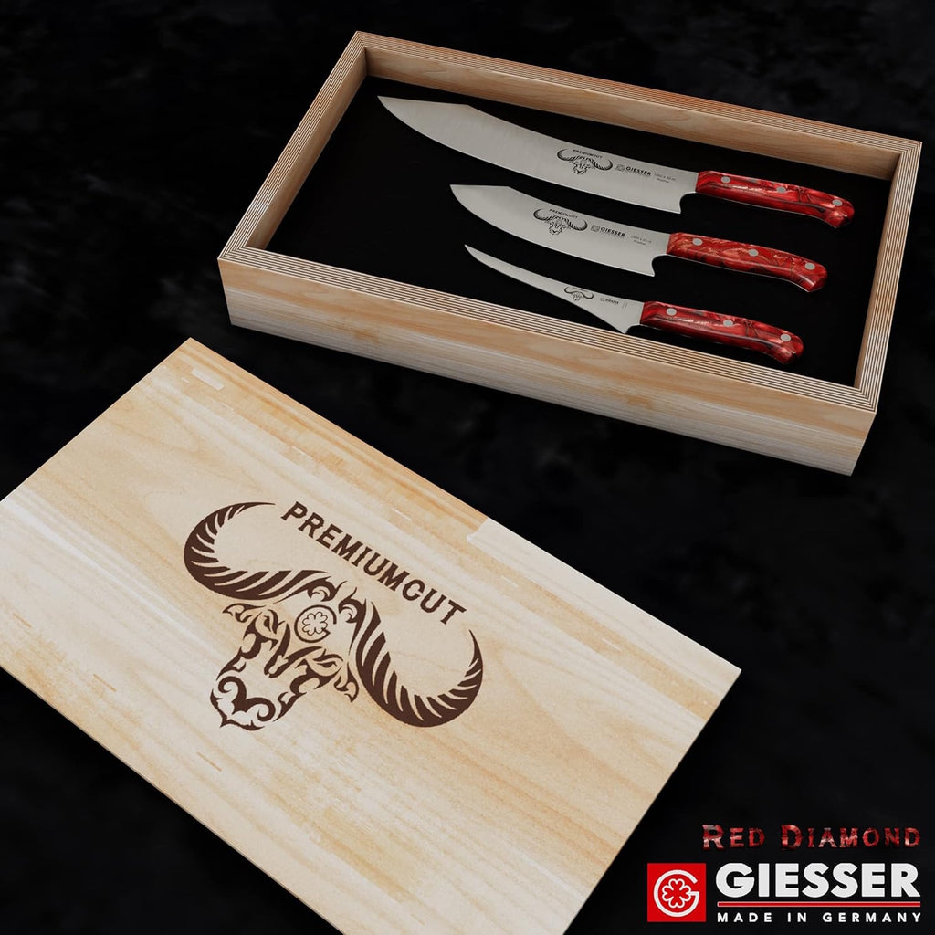• Das seit 1776 bestehende Familienunternehmen Giesser, sorgt mit der PremiumCut Serie dafür, dass Tradition auf Zukunft trifft. Die einmalige Klingenform und der perfektionierte Griff, sorgen für eine Innovation der Messerbranche - Messer für Profis
