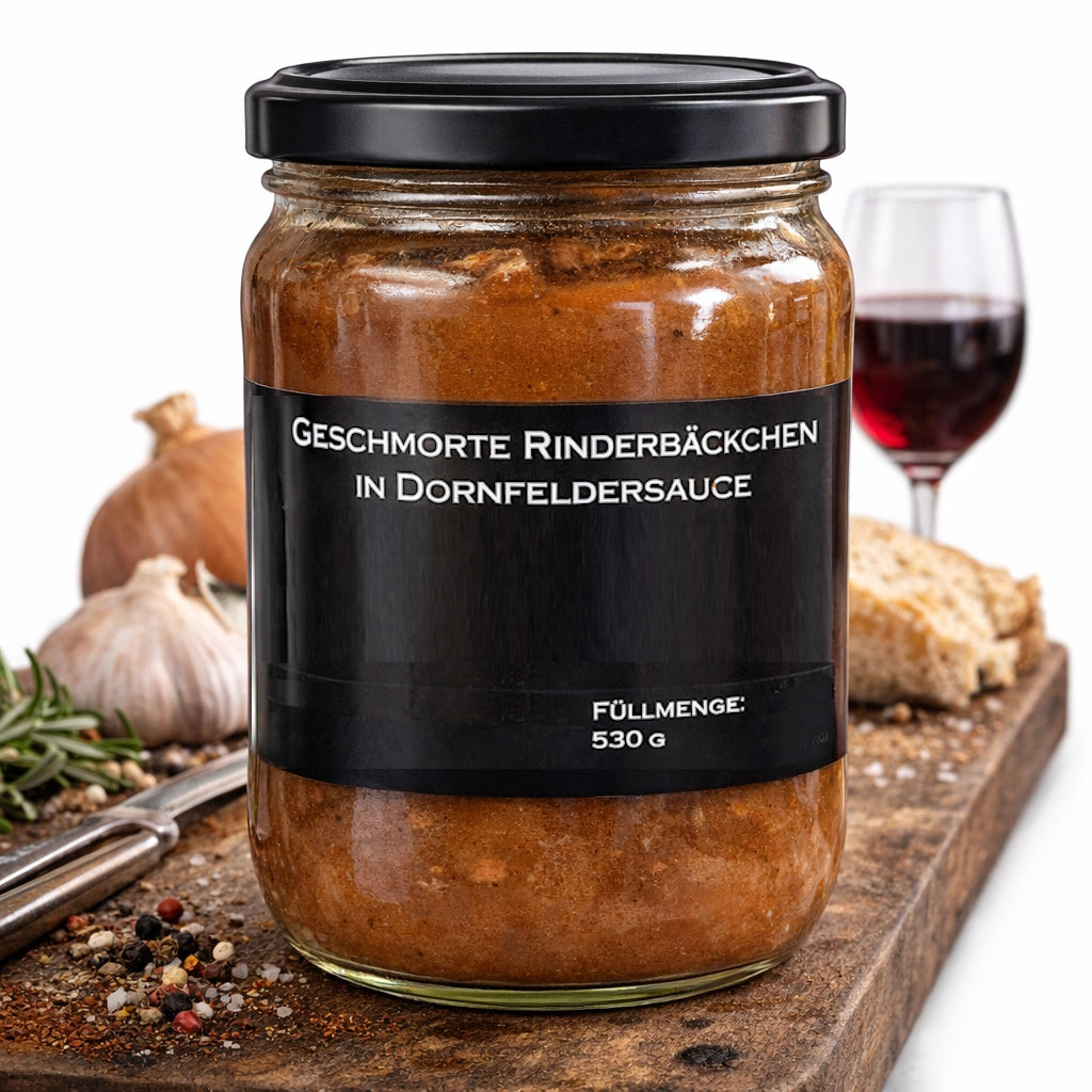 Das Gericht ist verzehrfertig im Glas und lässt sich schnell und unkompliziert zubereiten – ideal für Genießer, die auch im Alltag nicht auf Qualität verzichten möchten. Perfekt serviert mit Rotkohl und Knödeln, Kartoffelpüree oder Spätzle.